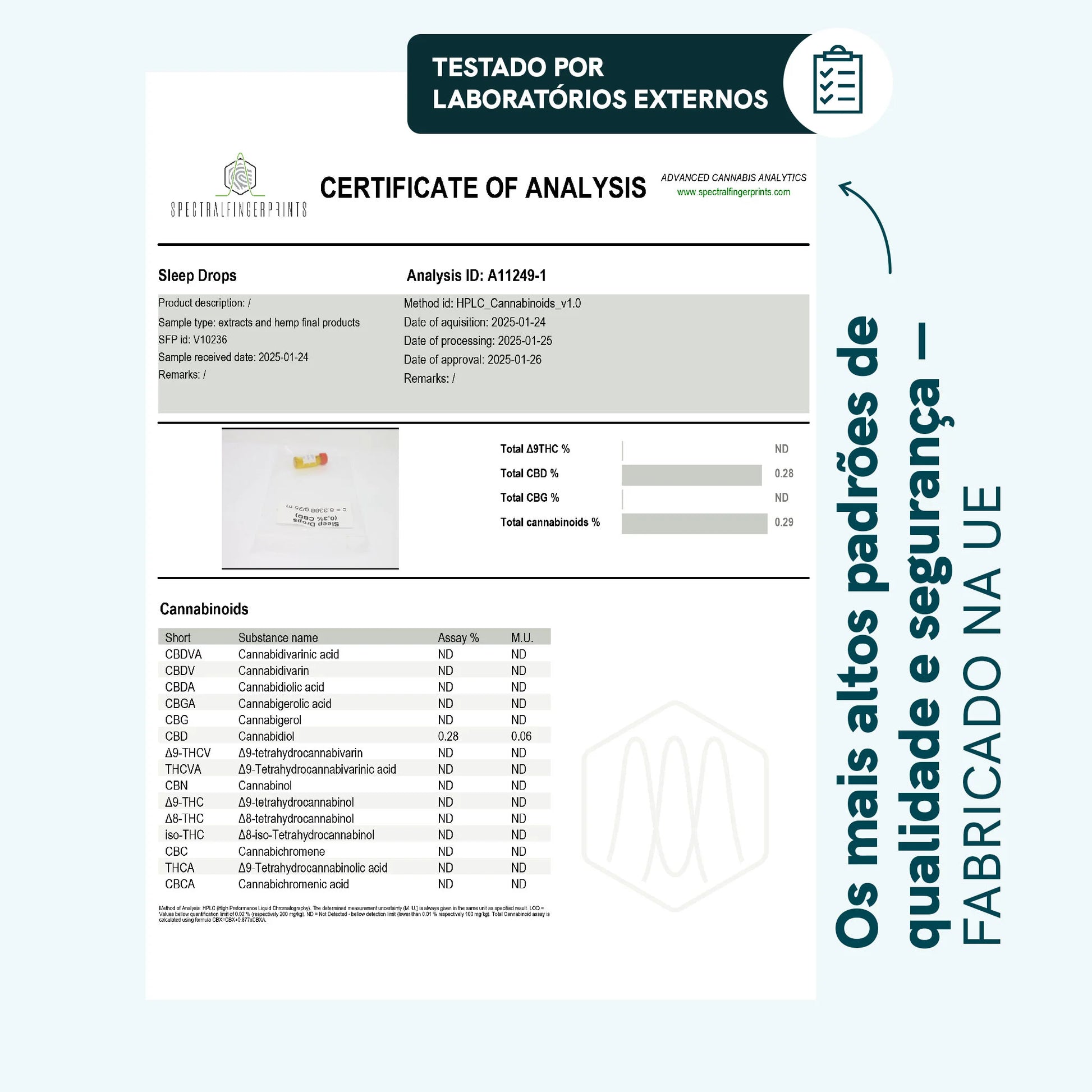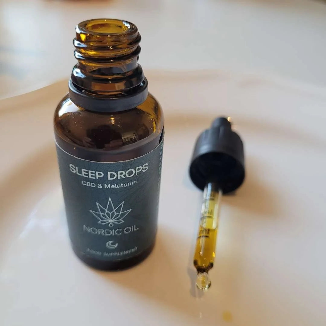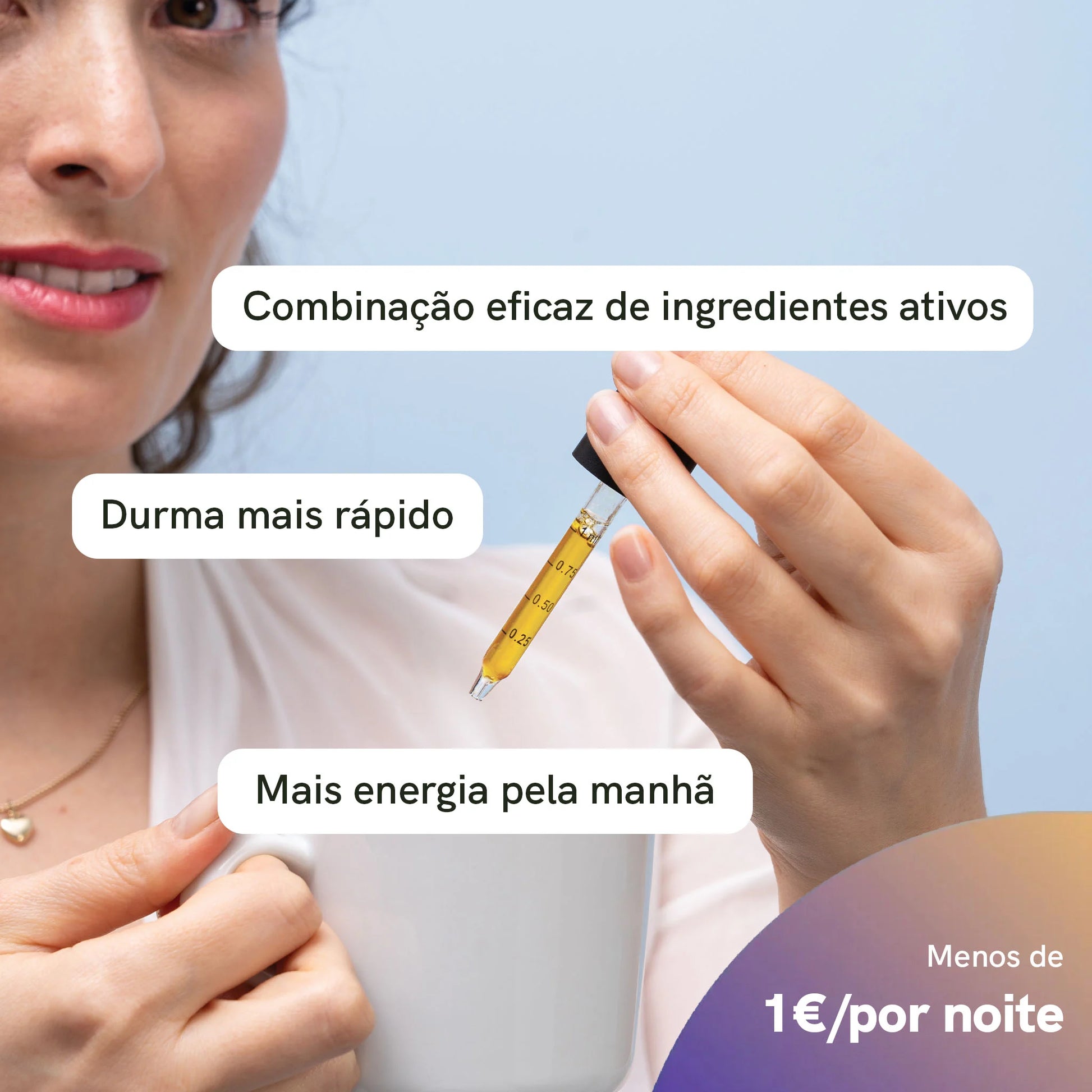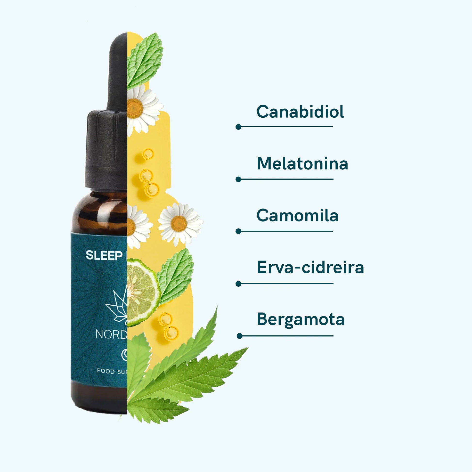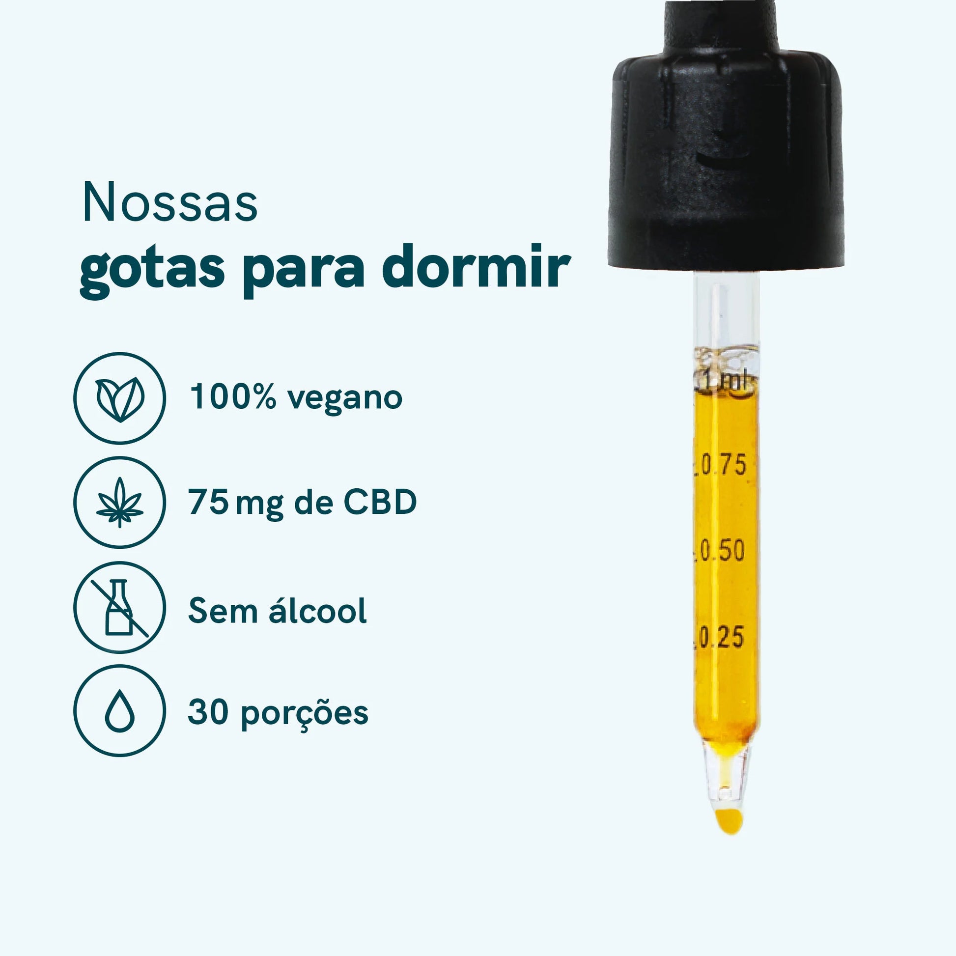 - Gotas para dormir de CBD com melatonina, camomila, bálsamo de limão e bergamota