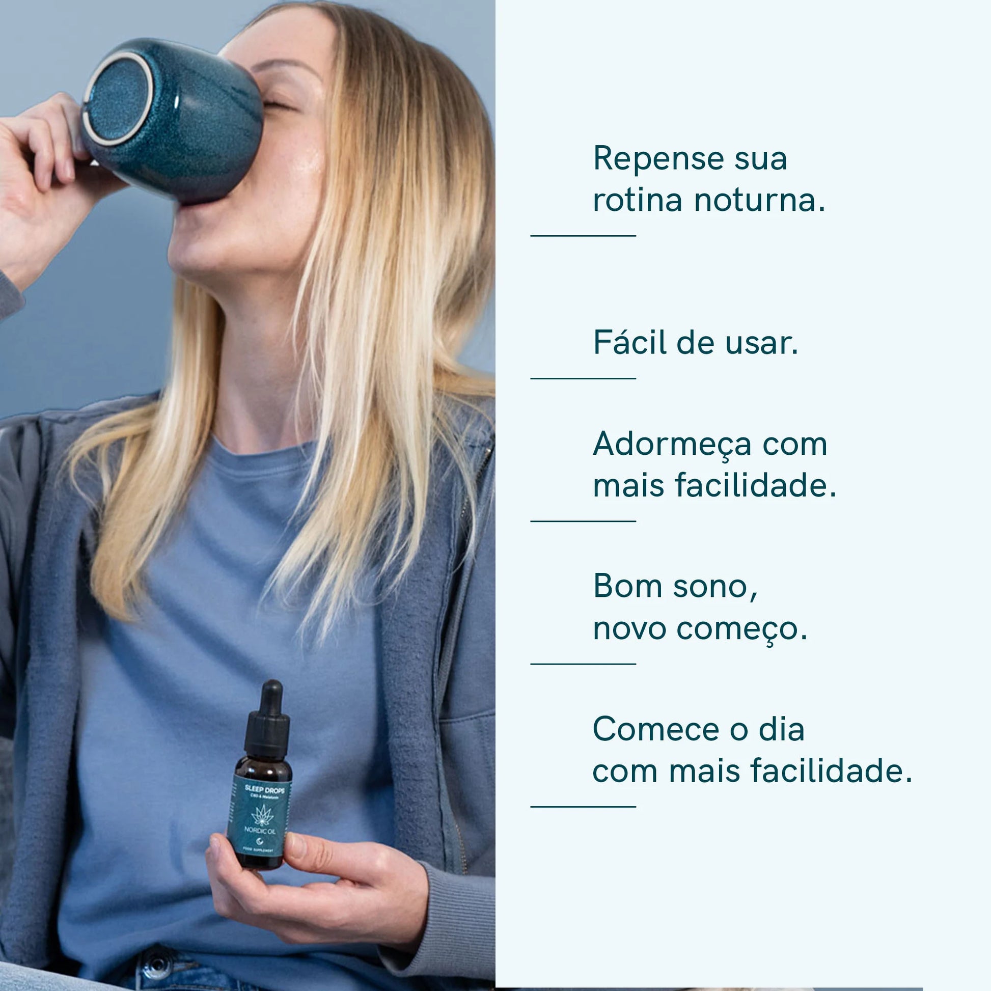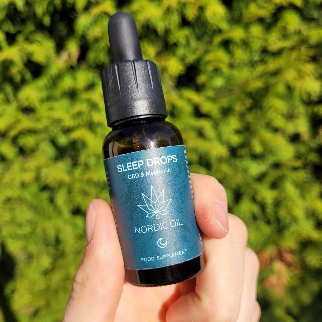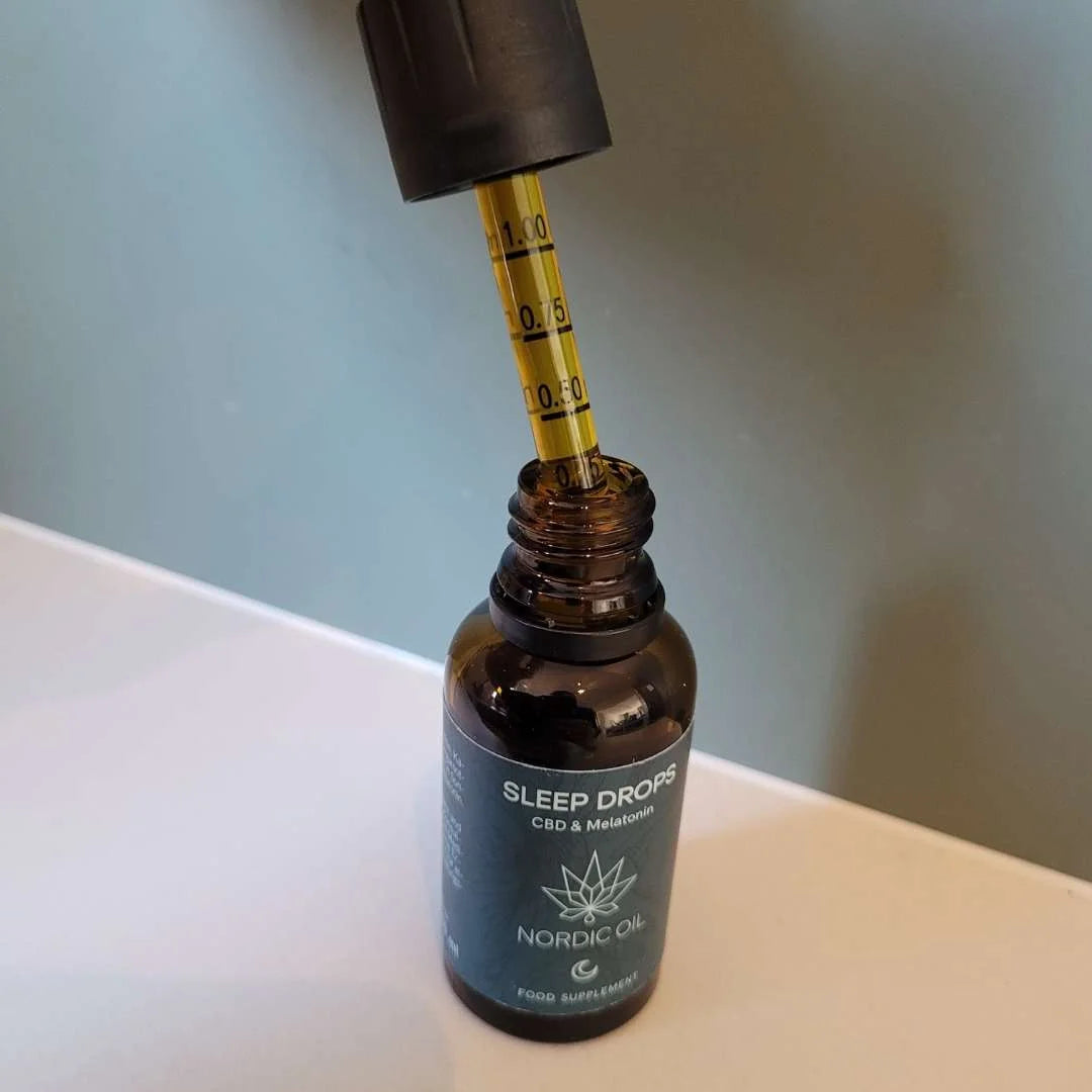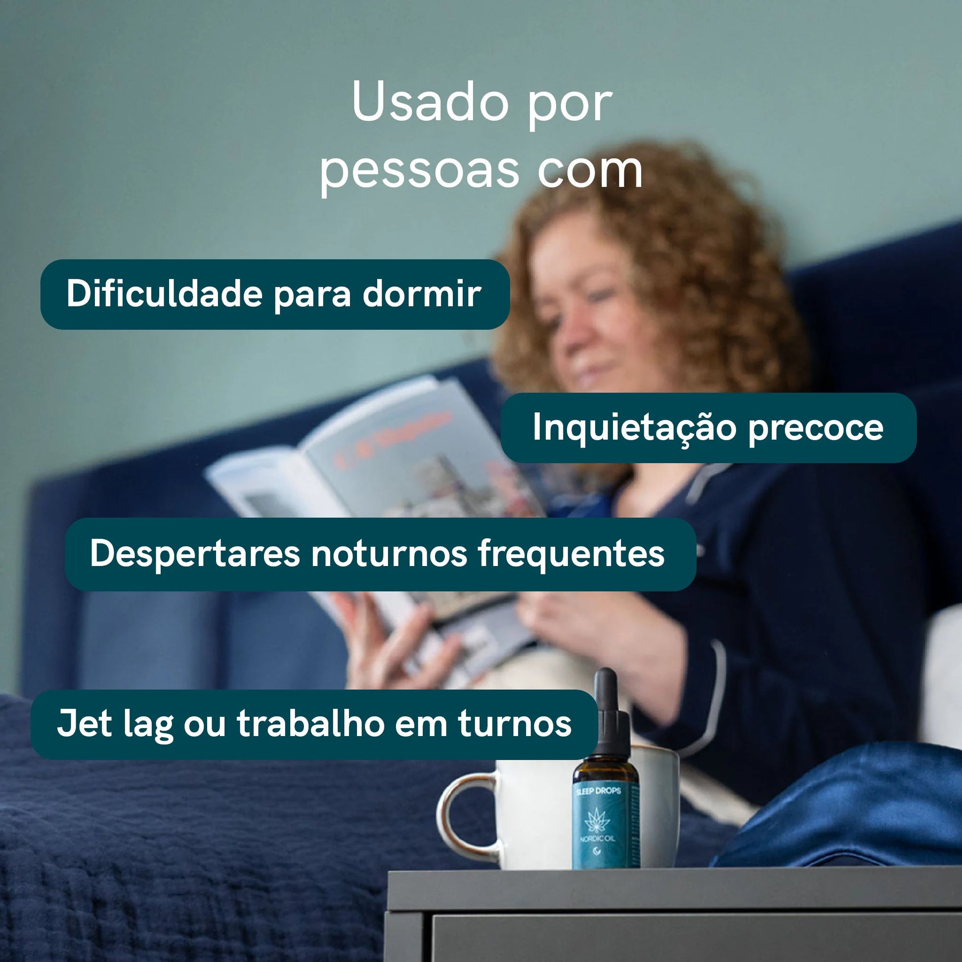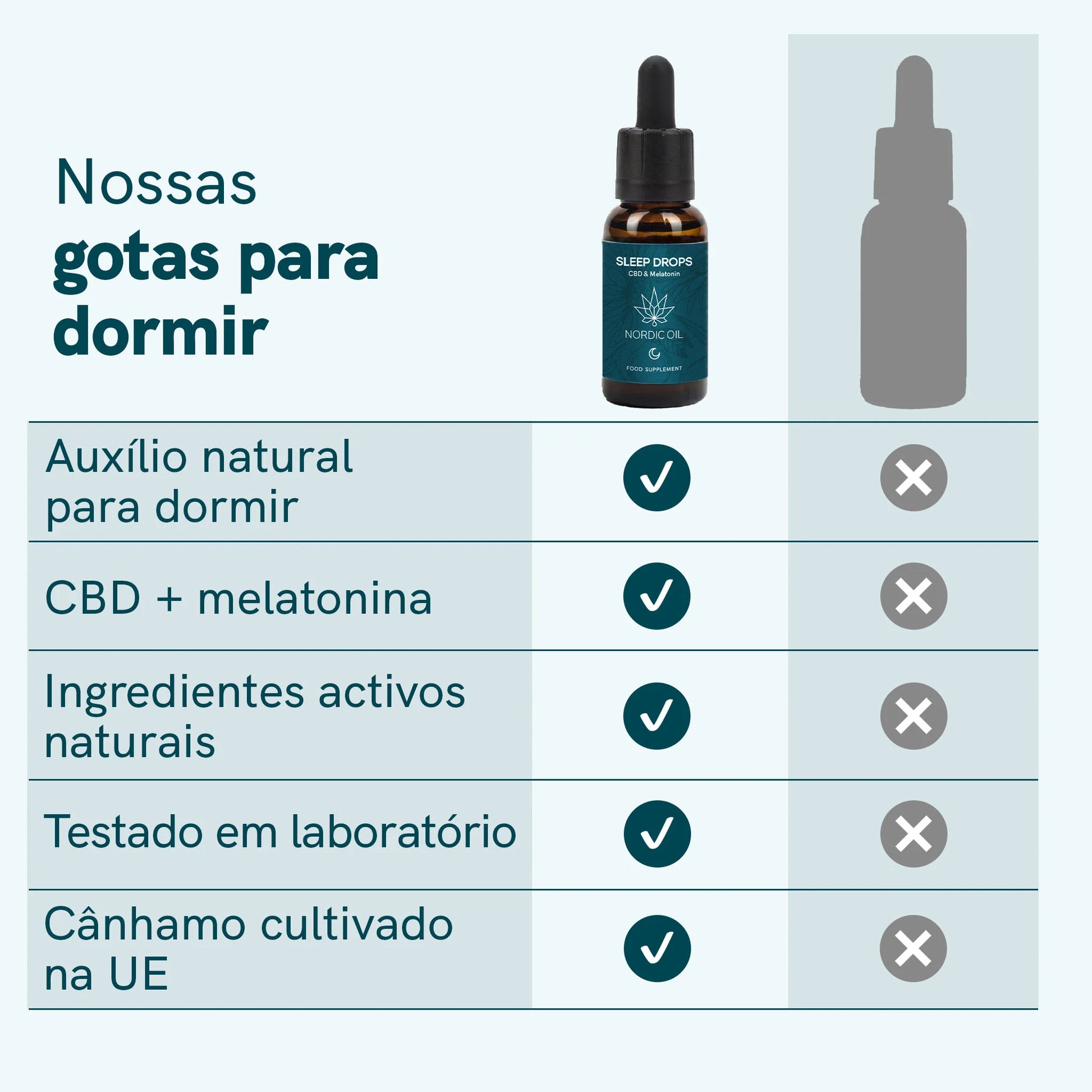 - Gotas para dormir de CBD com melatonina, camomila, bálsamo de limão e bergamota