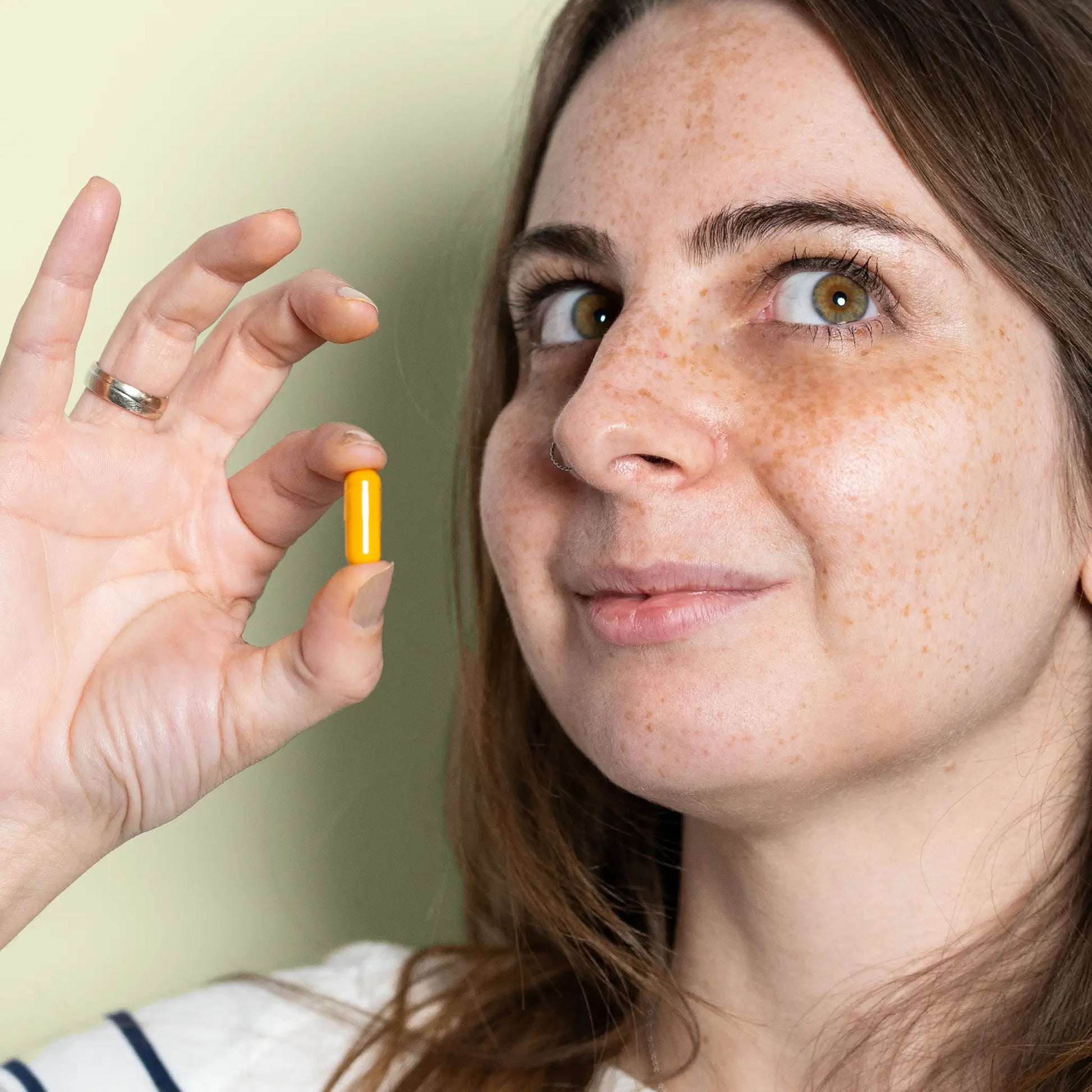 As nossas cápsulas contêm curcumina pura em pó, o que pode causar uma coloração temporária da pele quando tocada. As manchas podem ser facilmente removidas lavando as mãos. Por favor, tenha em atenção o contacto com a roupa.