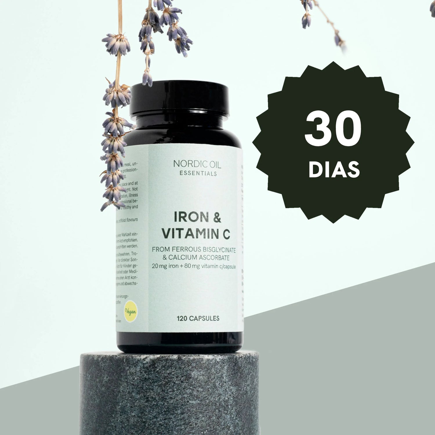 As nossas Cápsulas de Ferro e Vitamina C combinam 20 mg de ferro elementar com 80 mg de ascorbato de cálcio (uma forma suave de vitamina C) por cápsula, oferecendo uma combinação eficaz para apoiar os seus níveis de energia e bem-estar. O ferro é fornecido sob a forma de ferro bisglicinato, altamente biodisponível para melhor absorção, enquanto a Vitamina C potencia este processo e apoia o metabolismo energético natural do organismo.
