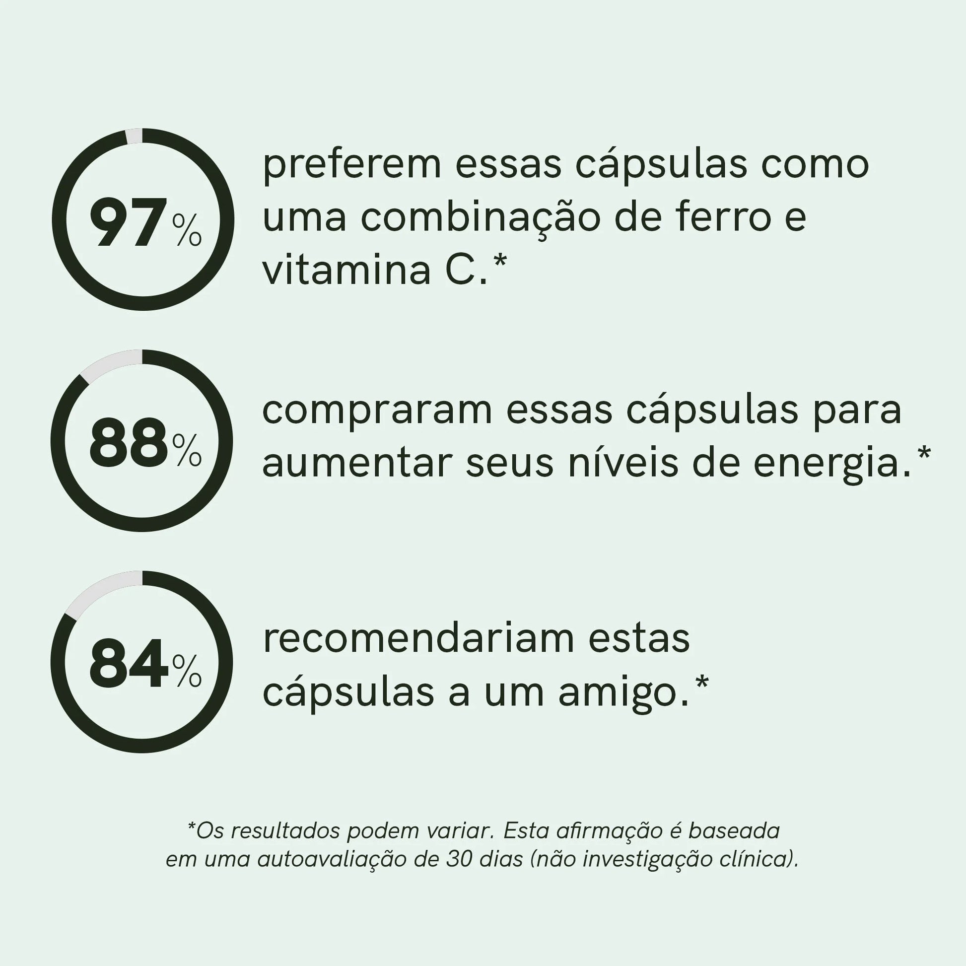 O tempo necessário para ver resultados visíveis depende de fatores individuais, como seu nível de ferro atual e seu estado geral de saúde. Geralmente, uma melhora nos níveis de energia e uma redução da fadiga podem ser observadas após 2 a 4 semanas de uso regular. No entanto, para melhores resultados, recomenda-se tomar as cápsulas por pelo menos 2 meses, especialmente para pessoas com deficiência de ferro.