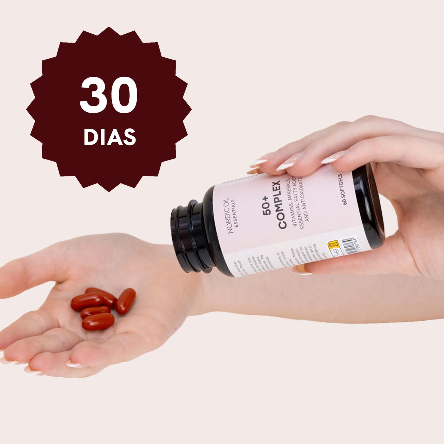 Nutrientes-chave, como Vitamina D3, Vitamina B12, Selénio e Zinco, melhoram a força óssea, a imunidade e os níveis de energia, abordando os desafios comuns do envelhecimento. Cada embalagem contém 60 cápsulas de gel mole fáceis de engolir, oferecendo um fornecimento para dois meses. Fabricado na UE com práticas sustentáveis, é livre de glúten, soja, sementes de sésamo e açúcar, proporcionando compatibilidade com várias dietas. Multi Complex 50+ é uma forma prática e eficaz de manter a vitalidade todos os dias.